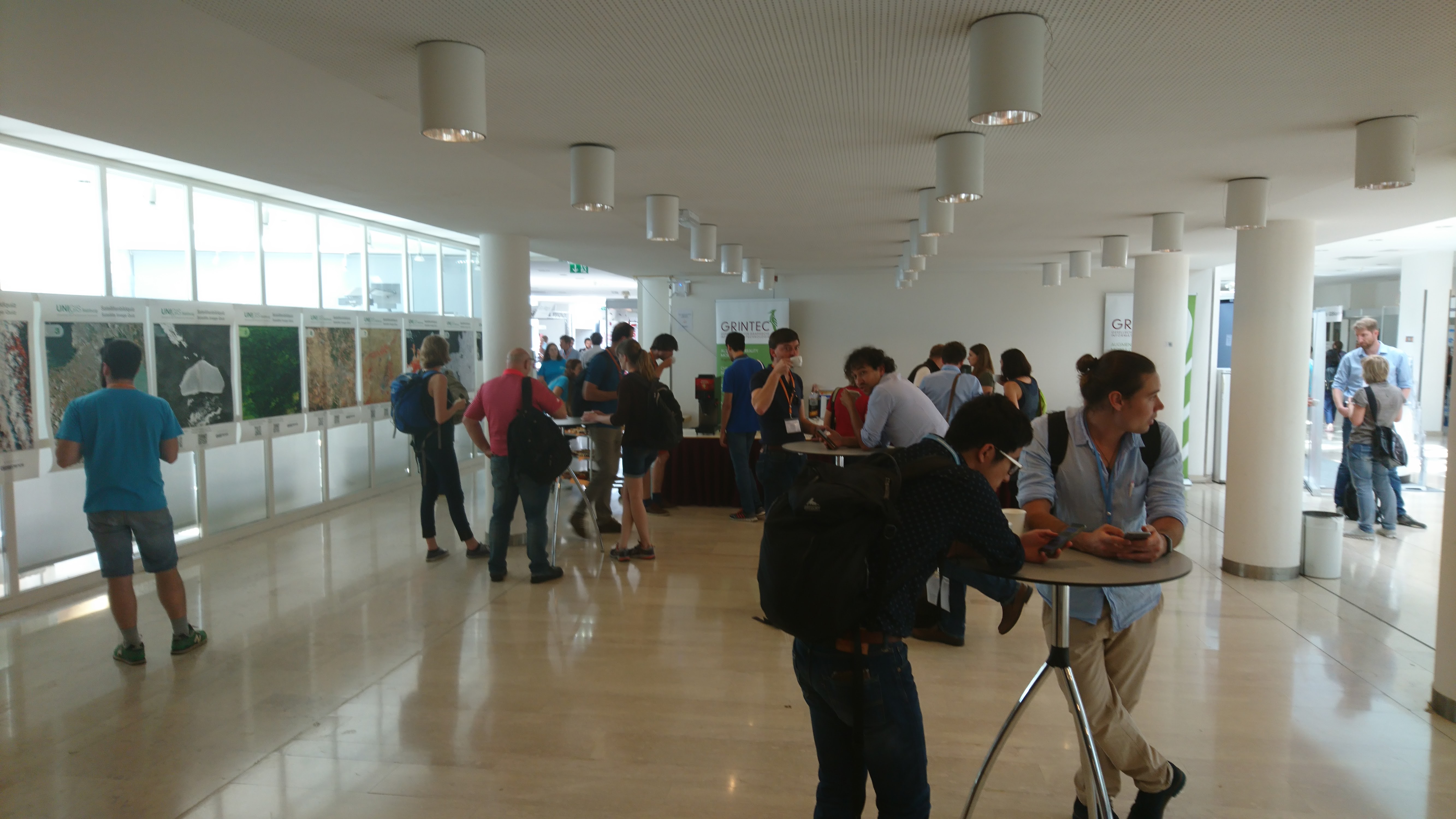 Der Besucheranstrom in den Vortragspausen war deutlich bemerkbar, konnte aber mit Unterstützung von Raphael DAS GUPTA von OSM-Schweiz (auch alle drei Tage anwesend) gut bewältigt werden. Für das SAGA GIS Projekt waren Volker Wichmann und Olaf als Ansprechpartner verfügbar. Anita Graser schaute wann immer möglich für das QGIS Projekt im OSGeo Bereich vorbei. Markus Schütz konnte sein Projekt Potree zur Visualisierung von Laserscan-Daten vorstellen. Emmanuel Belo vermittelte Auskunft zu geOrchestra.